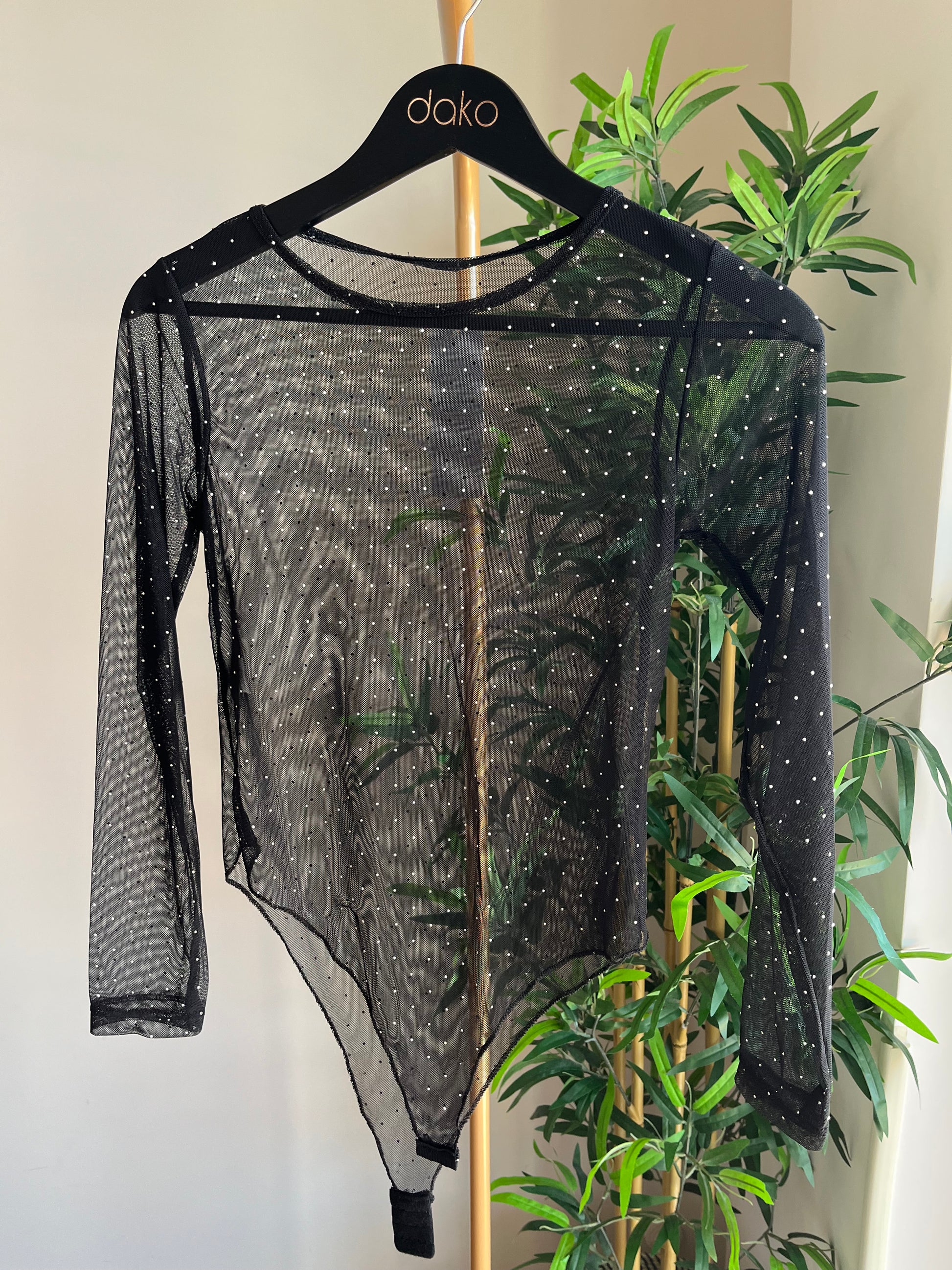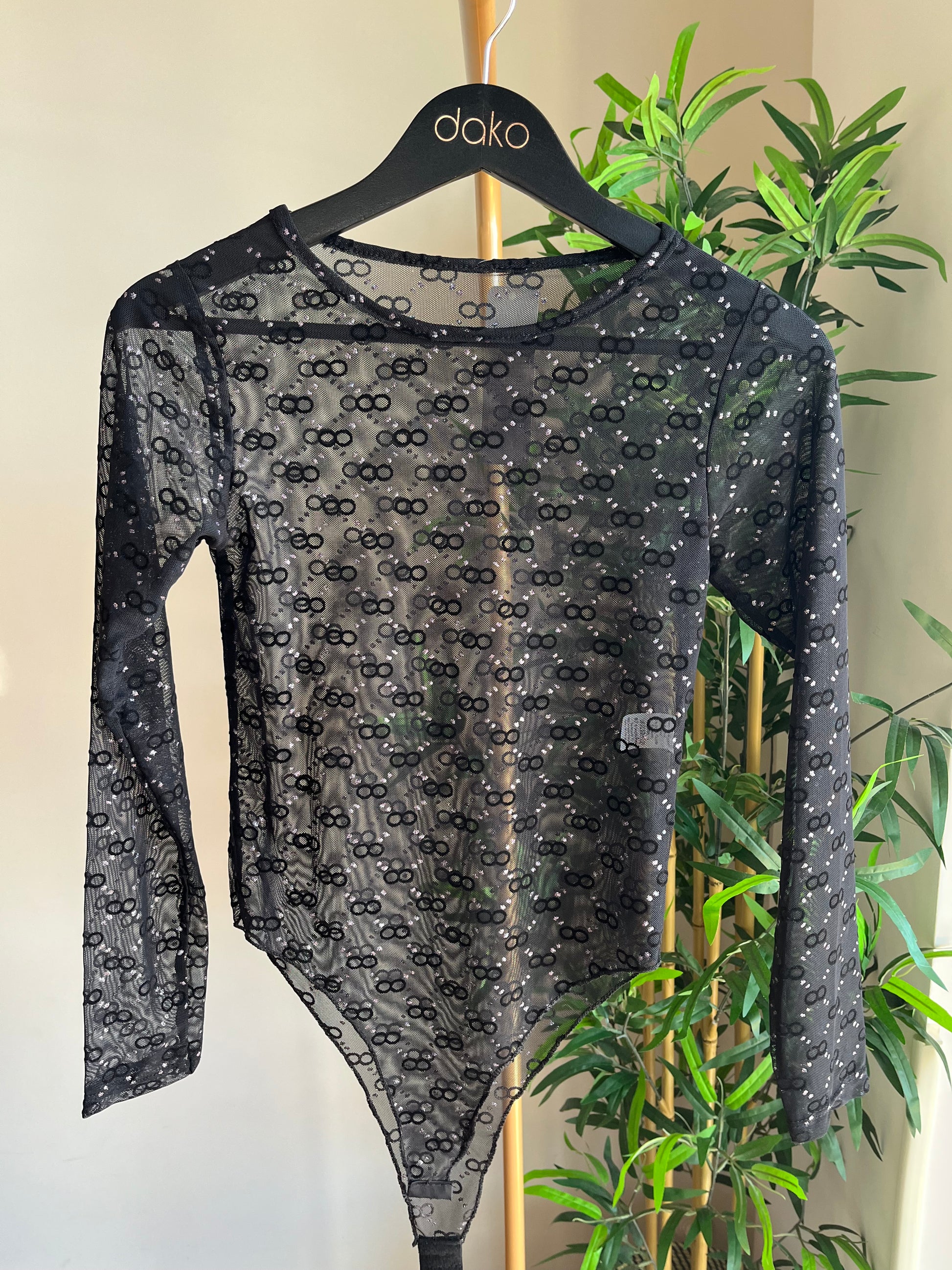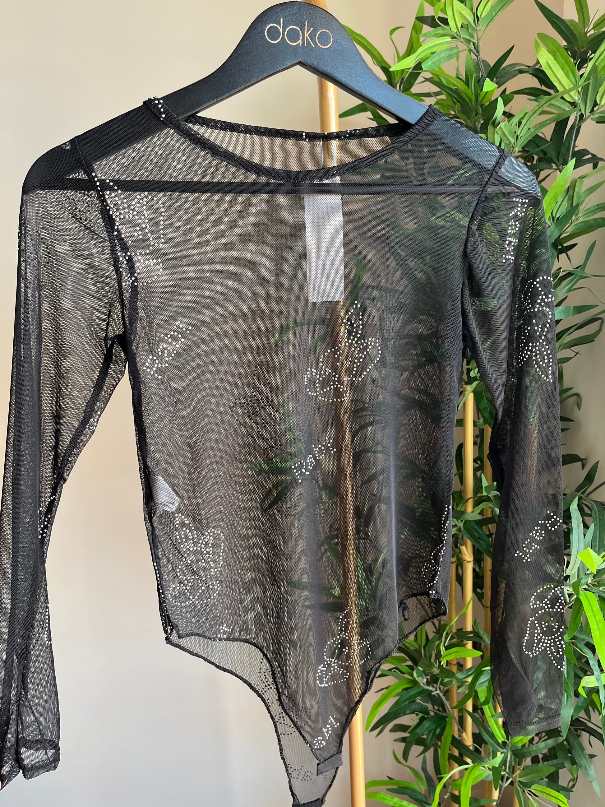 Body trasparente con dettagli. Taglia unica, veste massimo una M.